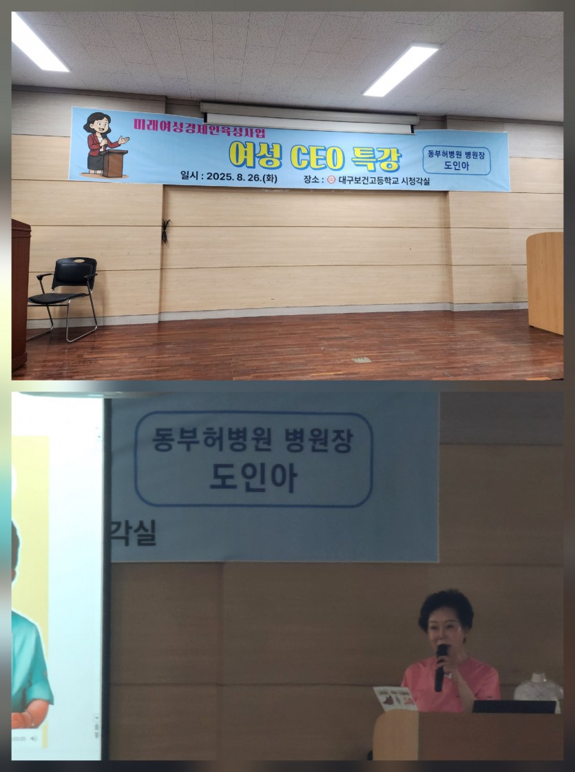 도인아병원장 ' 대구보건고등학교' 여성CEO특강(미래여성경제인 육성사업)